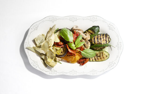 antipasti de courgettes, carottes, champignons, aubergines, tomates séchées et artichauts